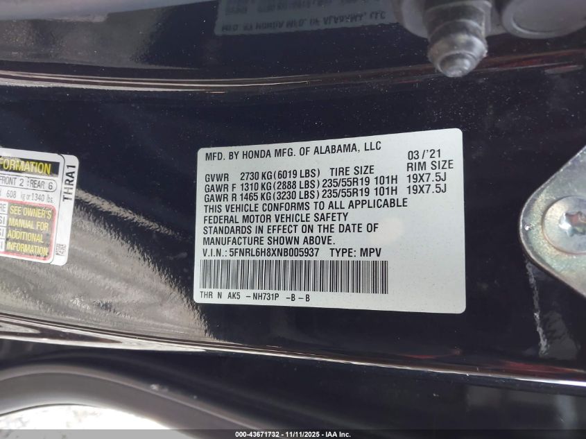 2022 HONDA ODYSSEY 2022 року Бензин, 3.5, Передний привод, vin - 5FNRL6H8XNB005937 из США