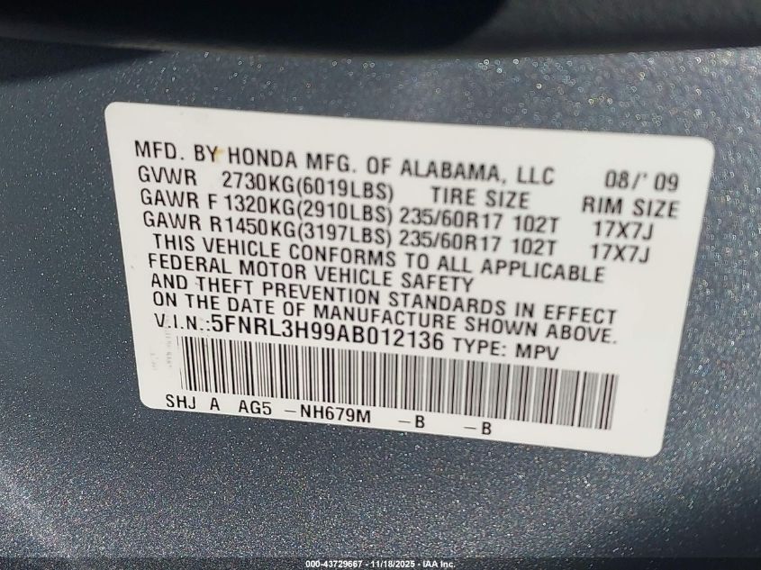 Цвет СеребряныйЦилиндры 6Привод Передний приводVIN 5FNRL3H99AB012136Состояние Заводится и едет (проверено)Повреждения Передняя правая AutoRIA