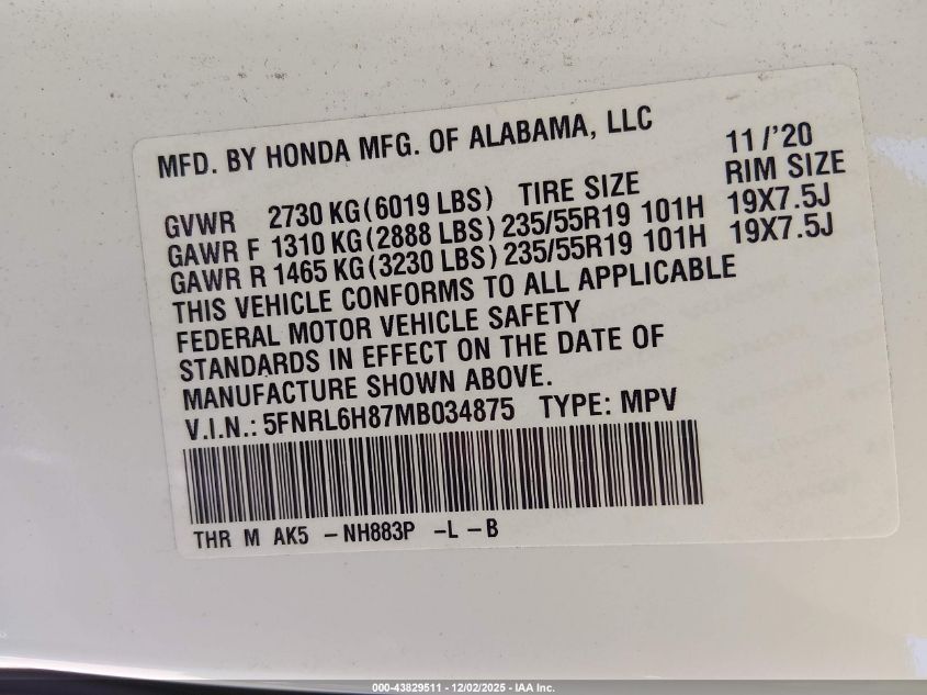 Цвет БелыйЦилиндры 6Привод Передний приводVIN 5FNRL6H87MB034875Состояние СтационарноПовреждения Передняя и задняя
