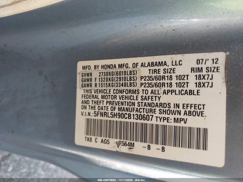 2012 HONDA ODYSSEY 2012 року Бензин, 3.5, Передний привод, vin - 5FNRL5H90CB130607 из США