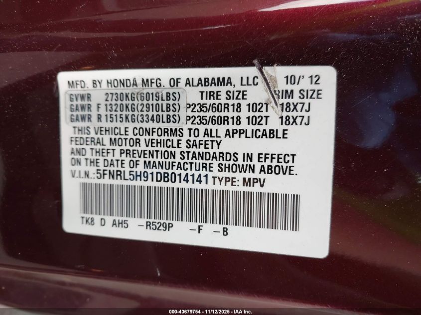 Цвет БургундияЦилиндры 6Привод Передний приводVIN 5FNRL5H91DB014141Состояние Заводится и едет (проверено)Повреждения Правая сторонаДата аукциона 2025-12-12 AutoRIA