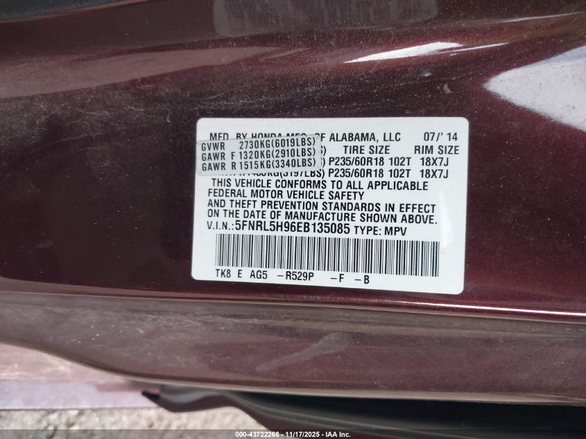 Цвет БордовыйЦилиндры 6Привод Передний приводVIN 5FNRL5H96EB135085Состояние Заводится и едет (проверено)Повреждения Град AutoRIA