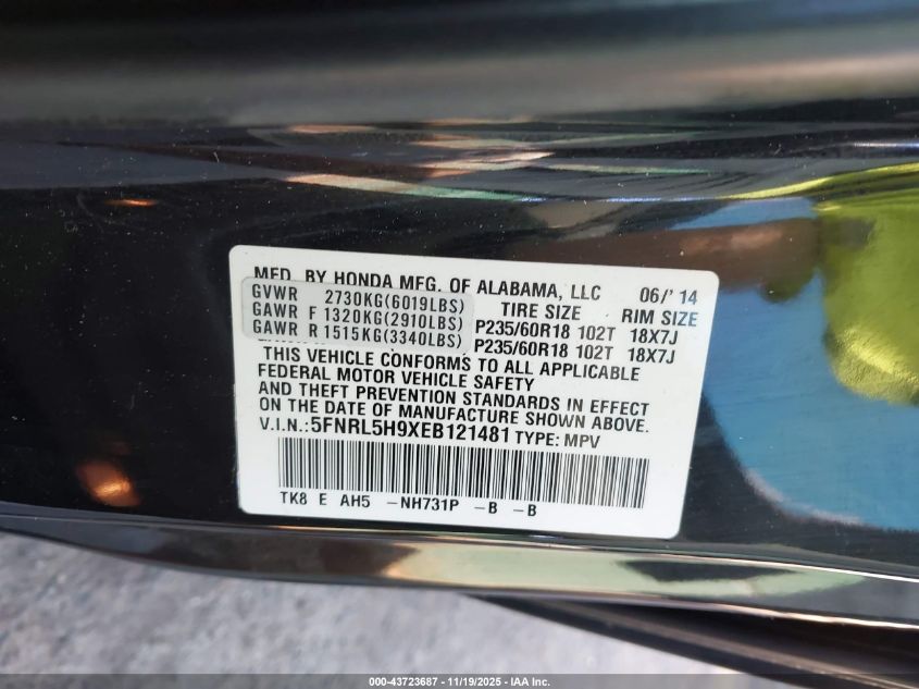 Цвет ЧерныйЦилиндры 6Привод Передний приводVIN 5FNRL5H9XEB121481Состояние Заводится и едет (проверено)Повреждения Передняя или задняя AutoRIA
