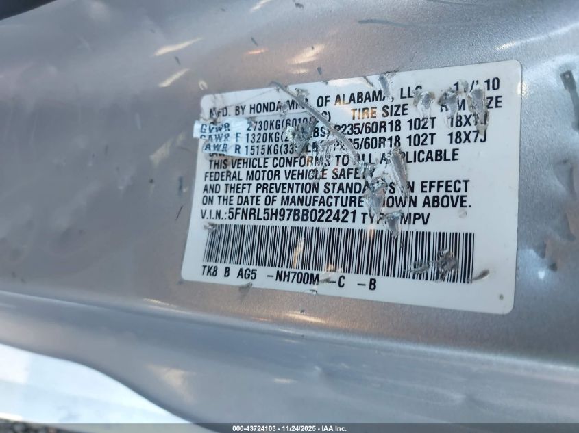 Цвет СеребряныйЦилиндры 6Привод Передний приводVIN 5FNRL5H97BB022421Состояние Заводится и едет (проверено)Повреждения Передняя и задняя AutoRIA