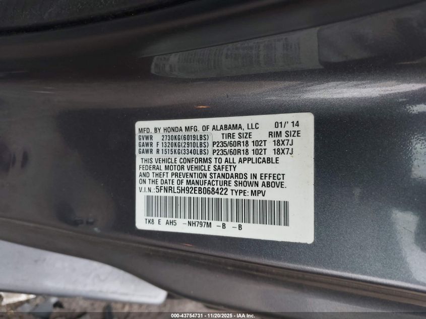 Цвет СерыйЦилиндры 6Привод Передний приводVIN 5FNRL5H92EB068422Состояние Заводится и едет (проверено)Повреждения Задняя AutoRIA