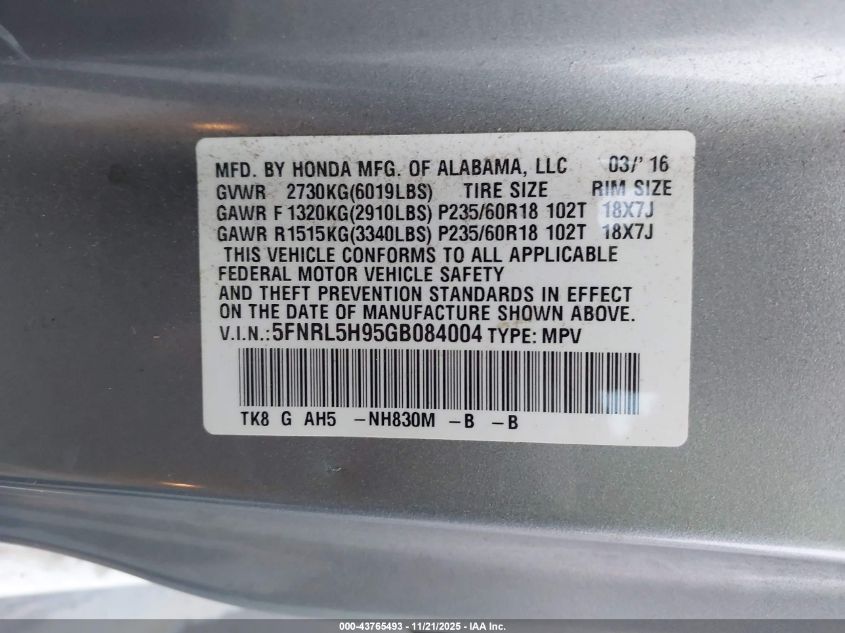 2016 HONDA ODYSSEY 2016 року Бензин, 3.5, Передний привод, vin - 5FNRL5H95GB084004 из США