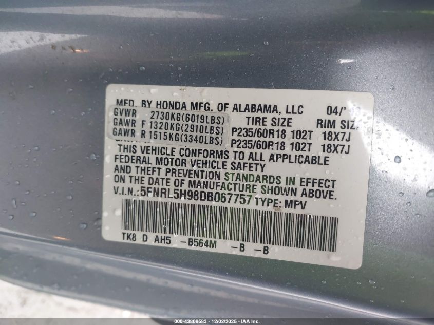2013 HONDA ODYSSEY 2013 року Бензин, 3.5, Передний привод, vin - 5FNRL5H98DB067757 из США
