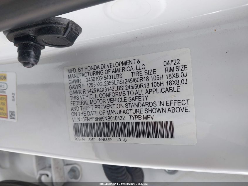 2022 HONDA PASSPORT 2022 року Бензин, 3.5, Полный привод, vin - 5FNYF8H69NB010432 из США