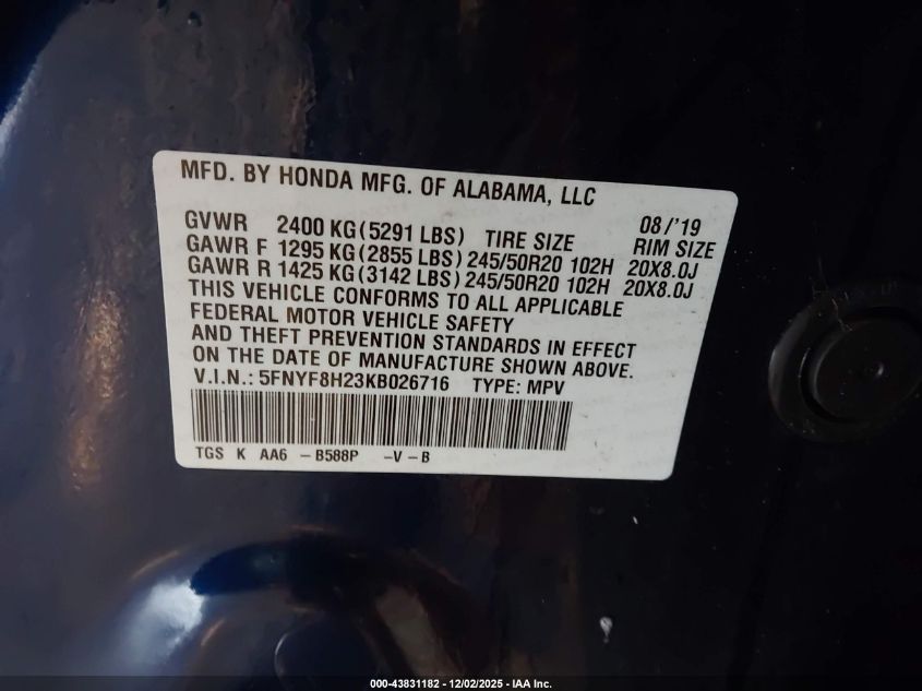 2019 HONDA PASSPORT 2019 року Бензин, 3.5, Полный привод, vin - 5FNYF8H23KB026716 из США