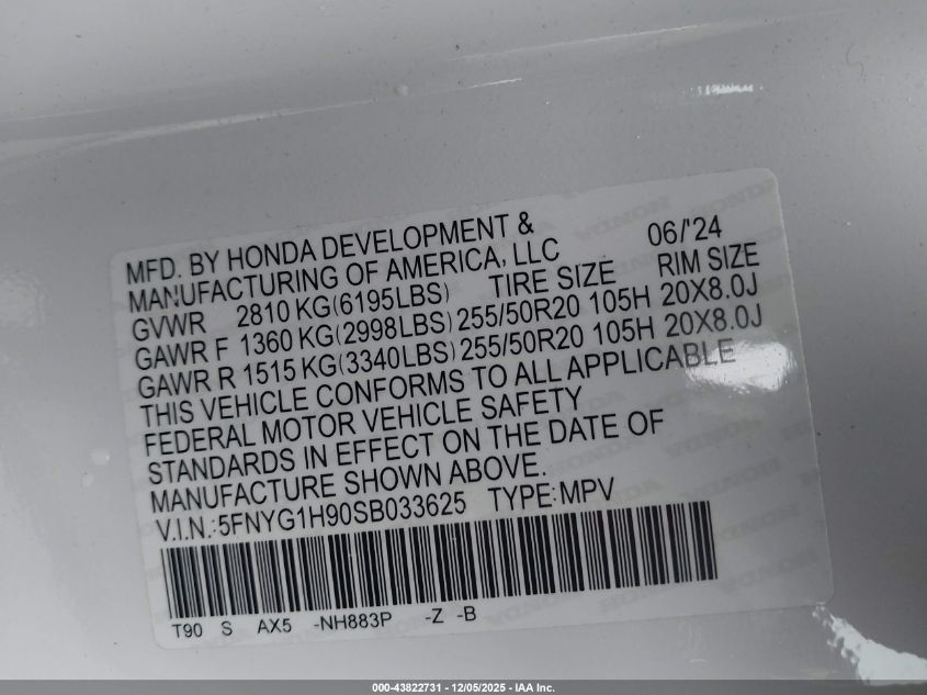 2025 HONDA PILOT 2025 року Бензин, 3.5, Полный привод, vin - 5FNYG1H90SB033625 из США