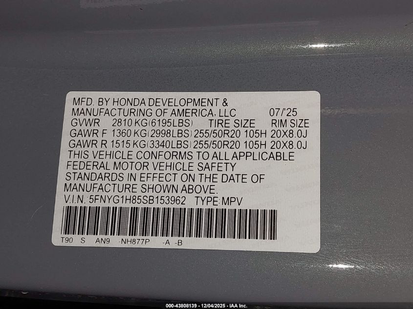 2025 HONDA PILOT 2025 року Бензин, 3.5, Полный привод, vin - 5FNYG1H85SB153962 из США