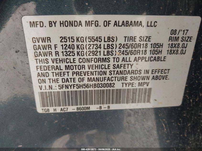 2017 HONDA PILOT 2017 року Бензин, 3.5, Передний привод, vin - 5FNYF5H56HB030082 из США