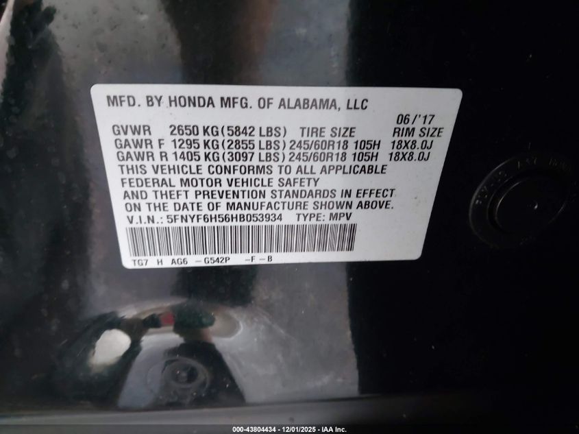 2017 HONDA PILOT 2017 року Бензин, 3.5, Полный привод, vin - 5FNYF6H56HB053934 из США