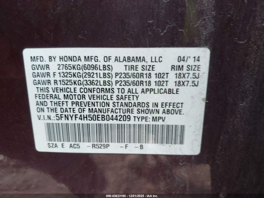 2014 HONDA PILOT LX