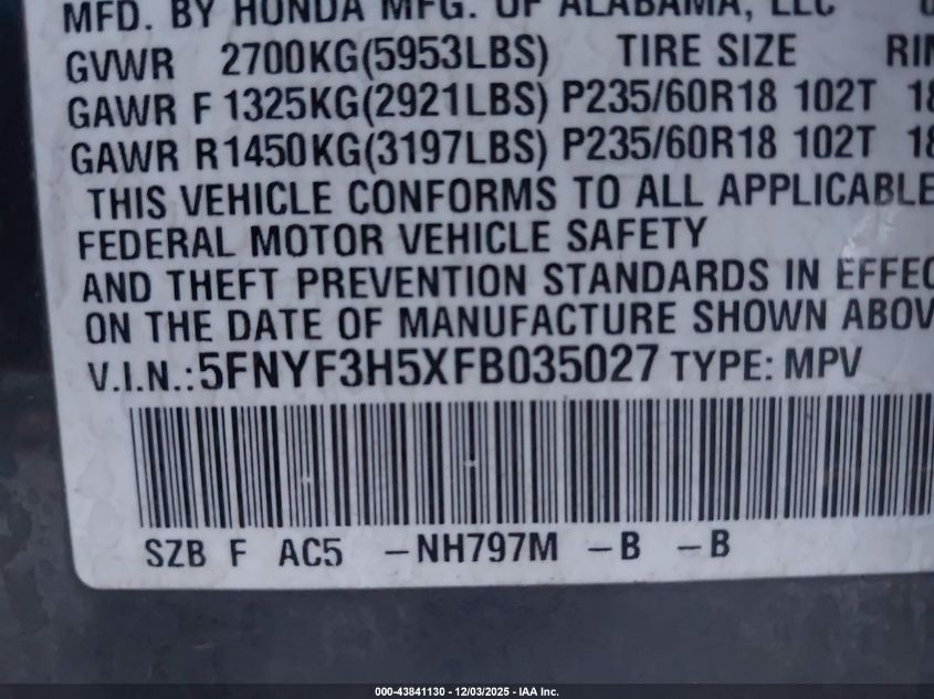 2015 HONDA PILOT TOURING