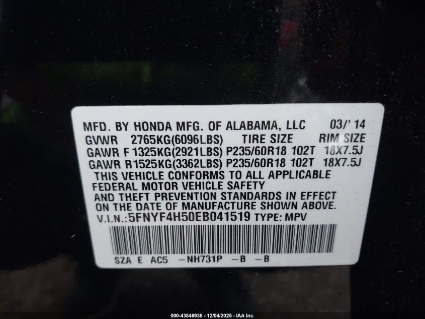 2014 HONDA PILOT LX