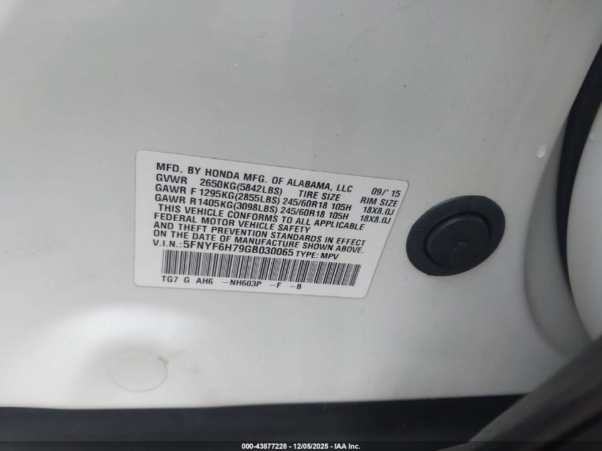Цвет БелыйЦилиндры 6Привод Полный приводVIN 5FNYF6H79GB030065Состояние СтационарноПовреждения МоторДата аукциона 2025-12-09 AutoRIA