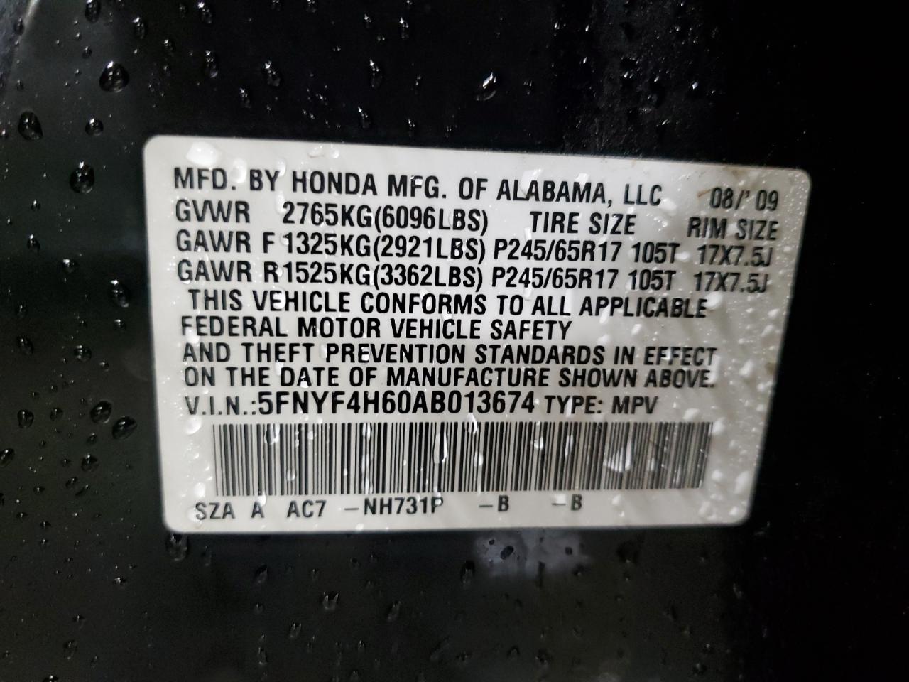 Цвет ЧерныйЦилиндры 6Привод Полный приводVIN 5FNYF4H60AB013674Состояние Заводится и едет (проверено)Повреждения Передняя или задняя AutoRIA