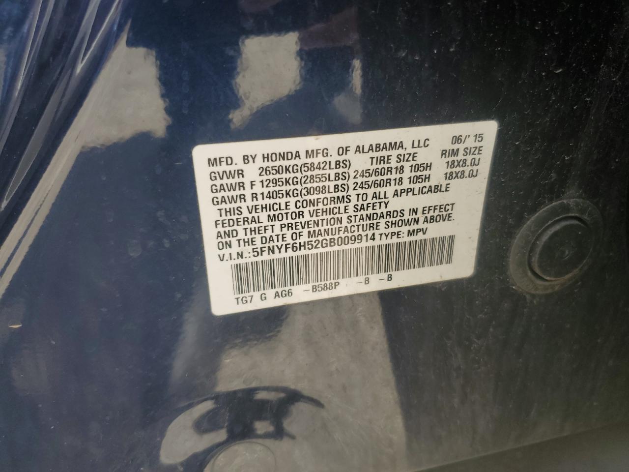 2016 HONDA PILOT 2016 року Бензин, 3.5, Полный привод, vin - 5FNYF6H52GB009914 из США
