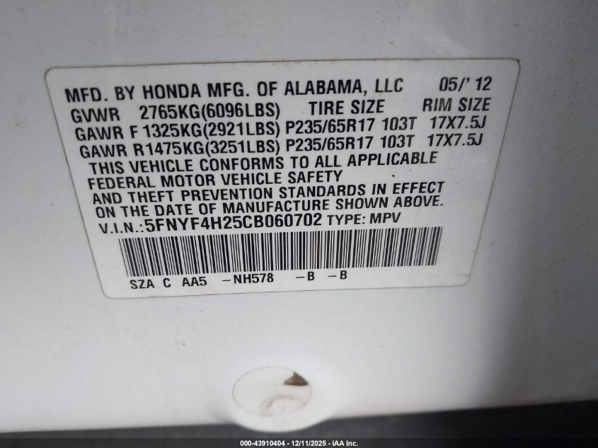 Цвет Цилиндры 6Привод Полный приводVIN 5FNYF4H25CB060702Состояние НеизвестноПовреждения Мотор AutoRIA
