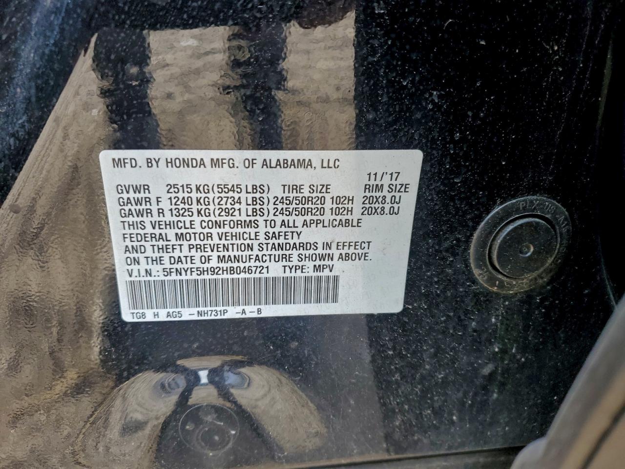 Цвет ЧерныйЦилиндры 6VIN 5FNYF5H92HB046721Состояние НеизвестноПовреждения Передняя или задняяДата аукциона 2025-12-09 AutoRIA