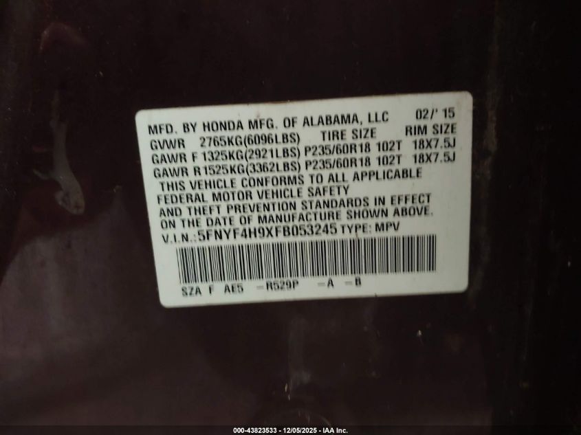 2015 HONDA PILOT TOURING