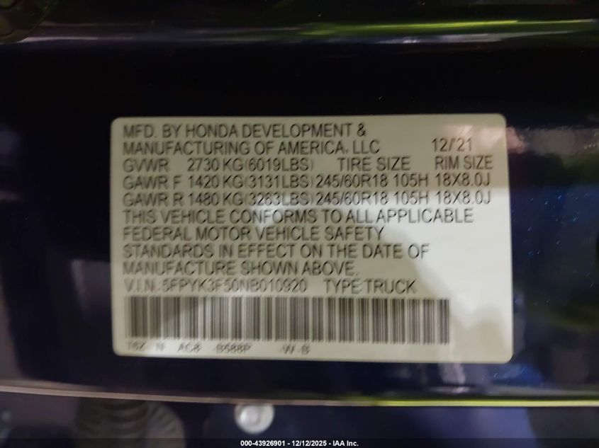 2022 HONDA RIDGELINE 2022 року Бензин, 3.5, Полный привод, vin - 5FPYK3F50NB010920 из США