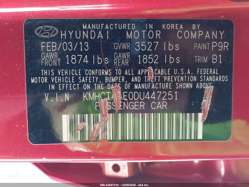 2013 HYUNDAI ACCENT 2013 року Бензин, 1.6, Передний привод, vin - KMHCT4AE0DU447251 из США