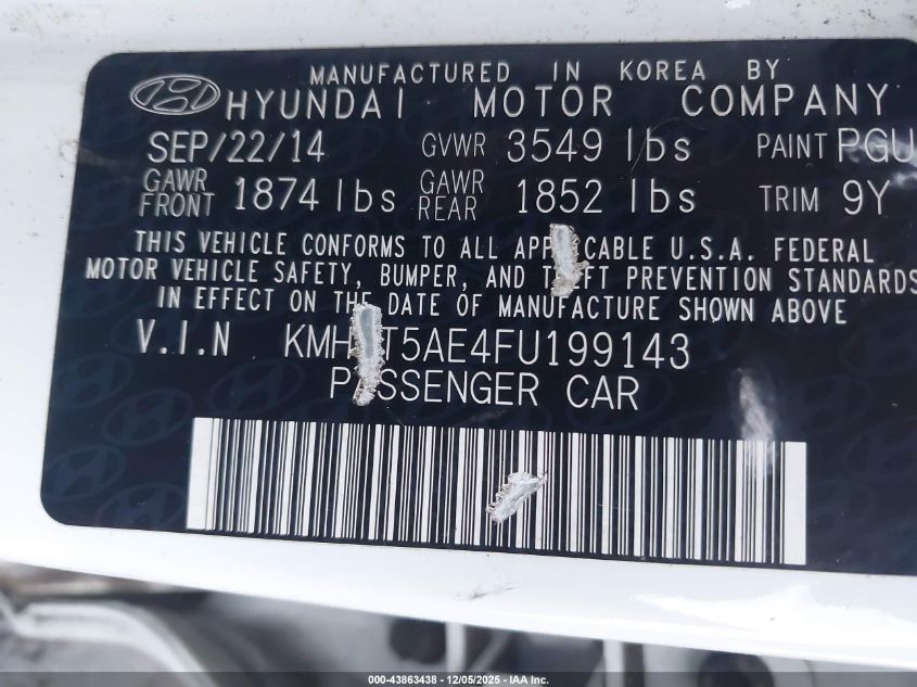 2015 HYUNDAI ACCENT 2015 року Бензин, 1.6, Передний привод, vin - KMHCT5AE4FU199143 из США