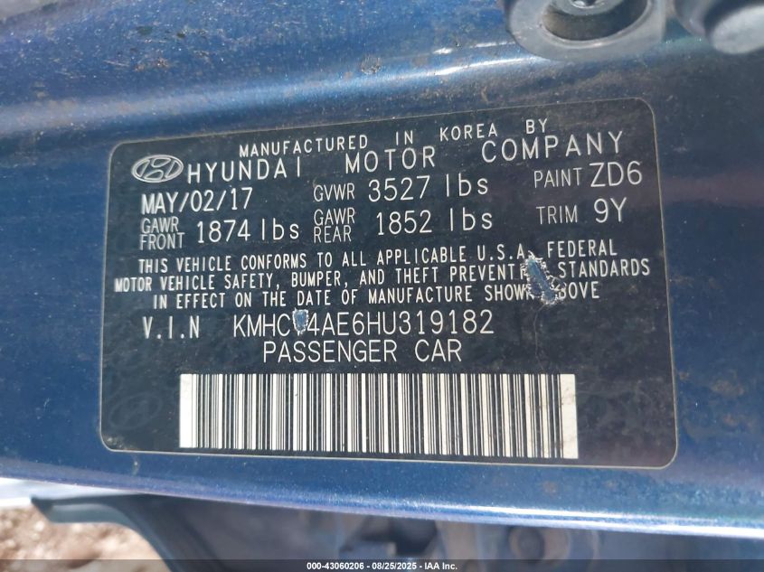 2017 HYUNDAI ACCENT 2017 року Бензин, 1.6, Передний привод, vin - KMHCT4AE6HU319182 из США
