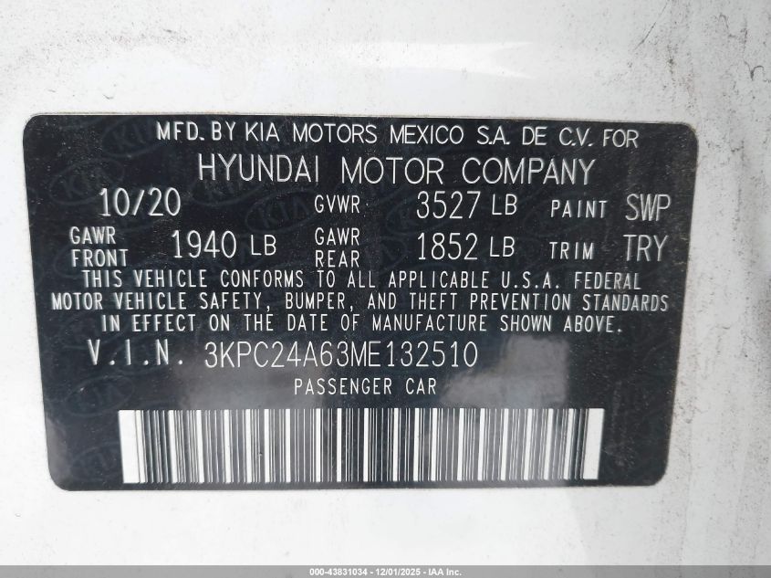 2021 HYUNDAI ACCENT 2021 року Бензин, 1.6, Передний привод, vin - 3KPC24A63ME132510 из США