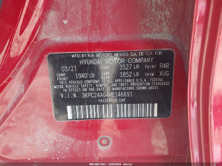 2021 HYUNDAI ACCENT 2021 року Бензин, 1.6, Передний привод, vin - 3KPC24A64ME146691 из США