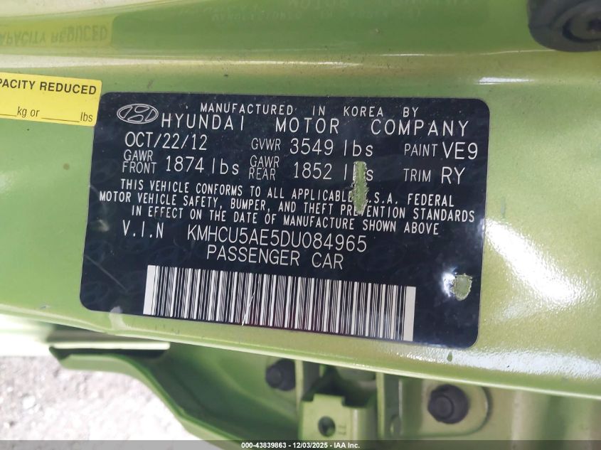 2013 HYUNDAI ACCENT 2013 року Бензин, 1.6, Передний привод, vin - KMHCU5AE5DU084965 из США