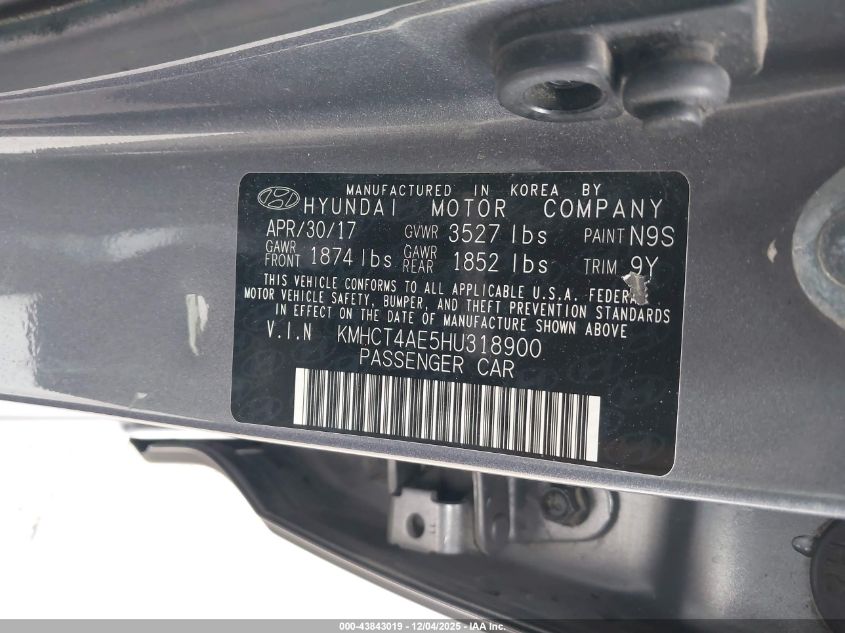 2017 HYUNDAI ACCENT 2017 року Бензин, 1.6, Передний привод, vin - KMHCT4AE5HU318900 из США