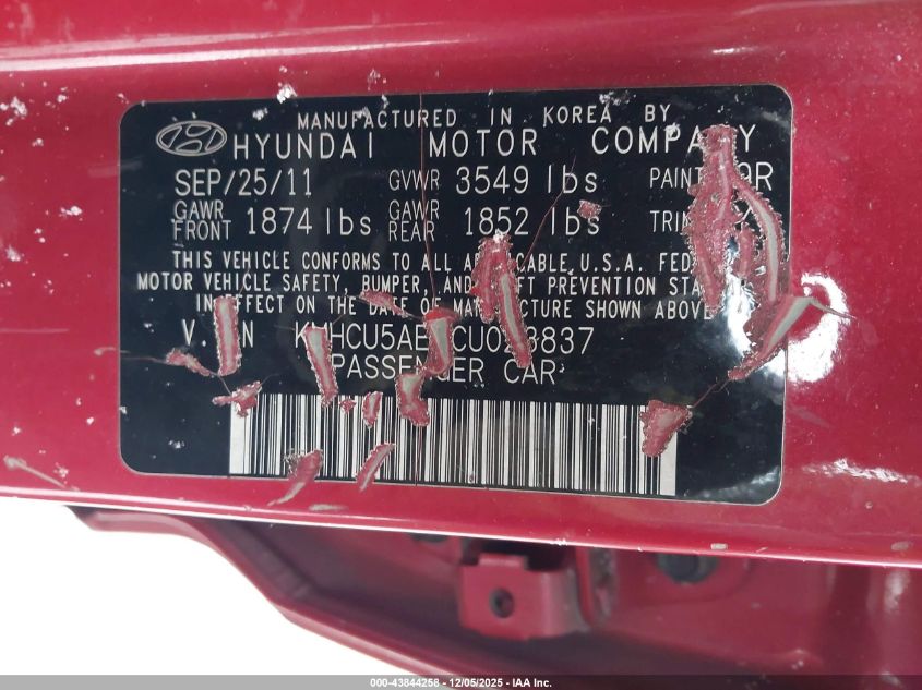 2012 HYUNDAI ACCENT 2012 року Бензин, 1.6, Передний привод, vin - KMHCU5AE1CU023837 из США
