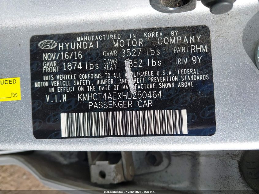 2017 HYUNDAI ACCENT 2017 року Бензин, 1.6, Передний привод, vin - KMHCT4AEXHU250464 из США