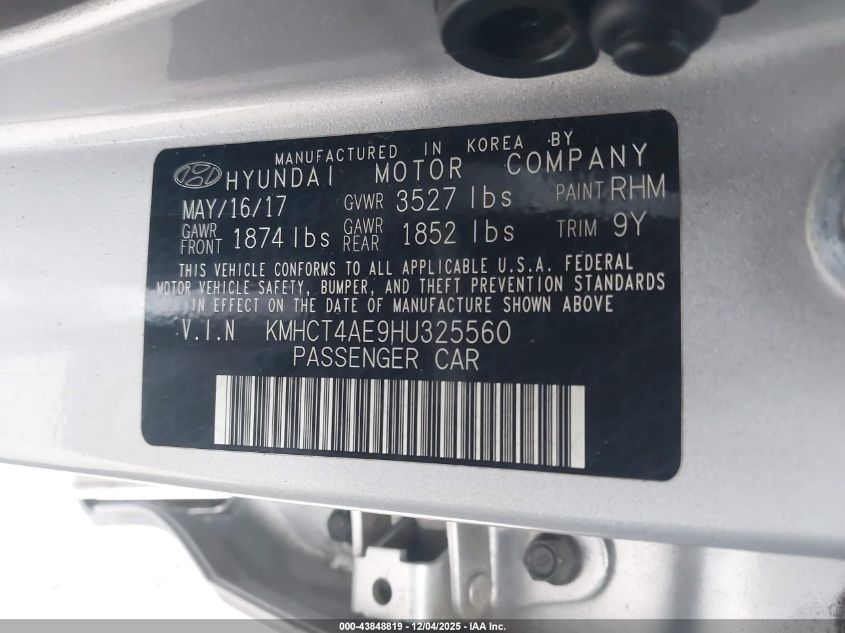 2017 HYUNDAI ACCENT 2017 року Бензин, 1.6, Передний привод, vin - KMHCT4AE9HU325560 из США