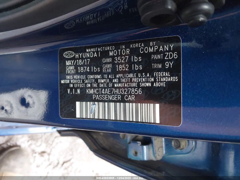 2017 HYUNDAI ACCENT 2017 року Бензин, 1.6, Передний привод, vin - KMHCT4AE7HU327856 из США