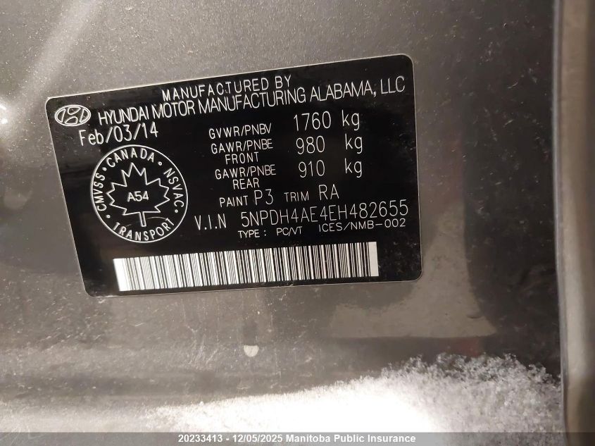 2014 HYUNDAI ELANTRA 2014 року Бензин, , Передний привод, vin - 5NPDH4AE4EH482655 из США
