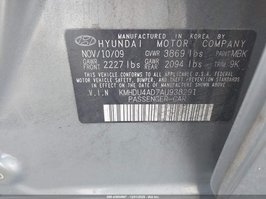2010 HYUNDAI ELANTRA 2010 року Бензин, 2.0, Передний привод, vin - KMHDU4AD7AU938291 из США