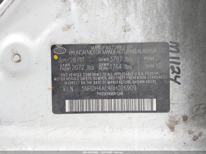 2011 HYUNDAI ELANTRA 2011 року Бензин, 1.8, Передний привод, vin - 5NPDH4AE4BH026909 из США