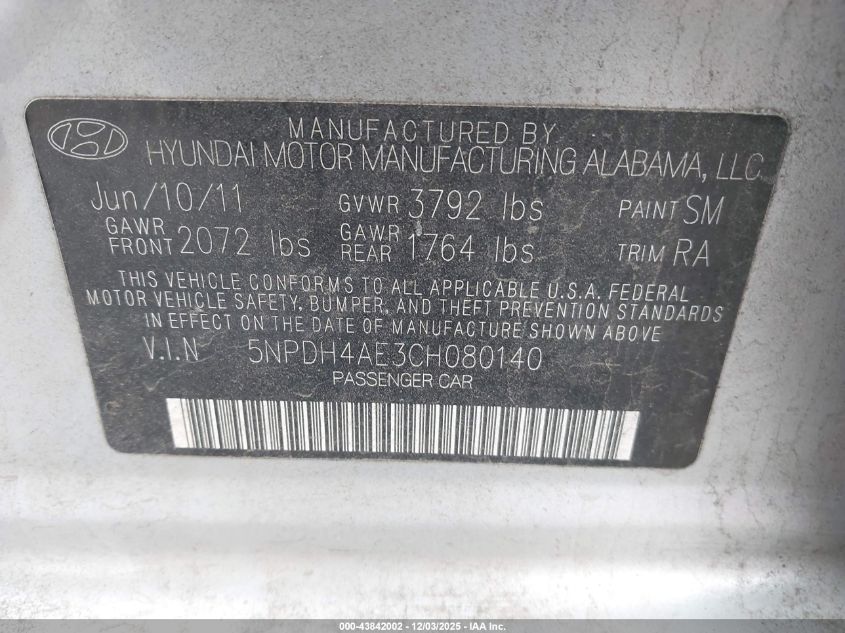 2012 HYUNDAI ELANTRA 2012 року Бензин, 1.8, Передний привод, vin - 5NPDH4AE3CH080140 из США