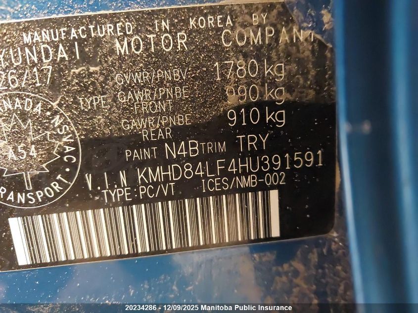 Цвет СинийЦилиндры 4Привод Передний приводVIN KMHD84LF4HU391591Состояние СтационарноПовреждения ПередняяДата аукциона 2025-12-17 AutoRIA