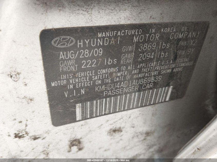 2010 HYUNDAI ELANTRA 2010 року Бензин, 2.0, Передний привод, vin - KMHDU4AD1AU869839 из США