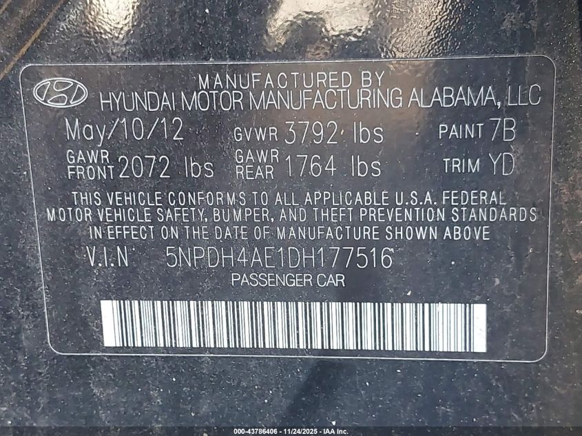 2013 HYUNDAI ELANTRA 2013 року Бензин, 1.8, Передний привод, vin - 5NPDH4AE1DH177516 из США