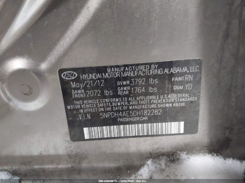 2013 HYUNDAI ELANTRA 2013 року Бензин, 1.8, Передний привод, vin - 5NPDH4AE5DH182282 из США