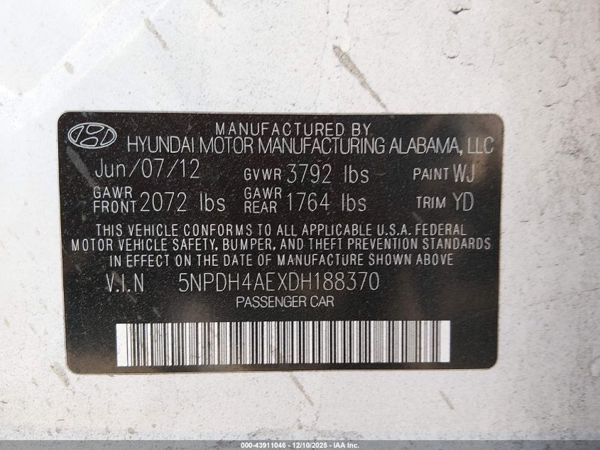 2013 HYUNDAI ELANTRA 2013 року Бензин, 1.8, Передний привод, vin - 5NPDH4AEXDH188370 из США