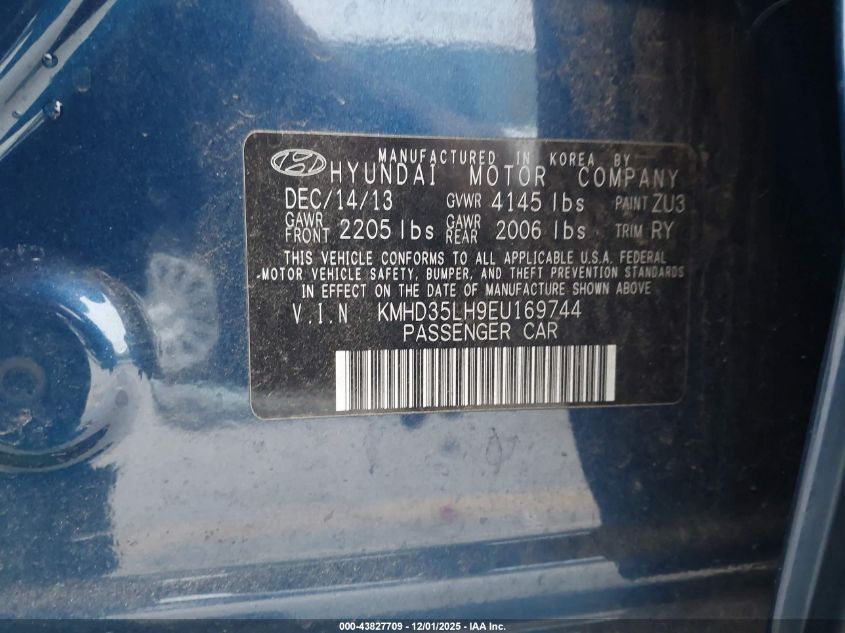 2014 HYUNDAI ELANTRA 2014 року Бензин, 2.0, Передний привод, vin - KMHD35LH9EU169744 из США