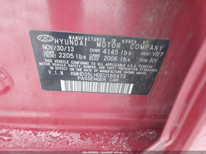 2014 HYUNDAI ELANTRA 2014 року Бензин, 2.0, Передний привод, vin - KMHD35LH0EU166473 из США