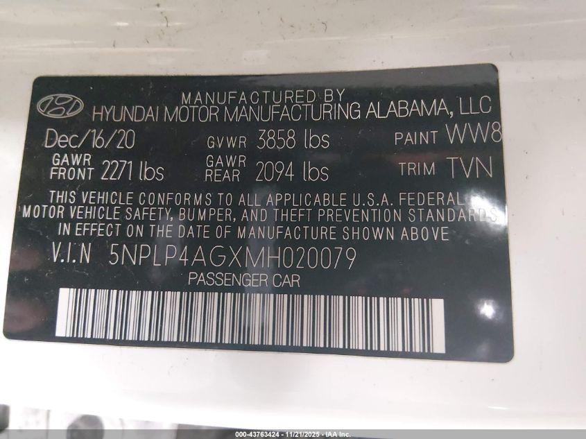 2021 HYUNDAI ELANTRA 2021 року Бензин, 2.0, Передний привод, vin - 5NPLP4AGXMH020079 из США